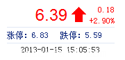 | 最 高: | 6.41 | 成交額: | 3353.59萬(wan) 元 | 換手率: | 1.92% |