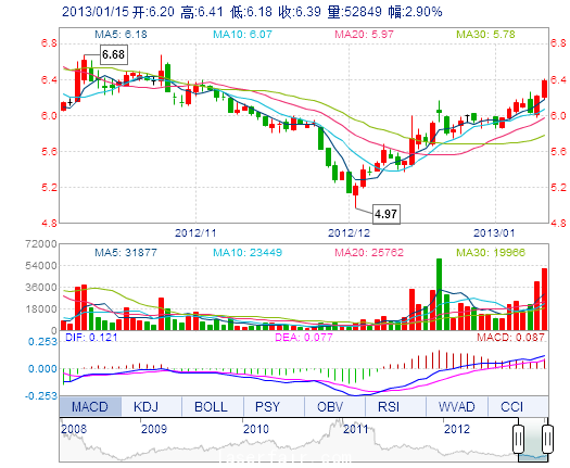 | 今 開: | 6.20 | 成交量: | 5.28萬(wan) 手 | 振 幅: | 3.70% |