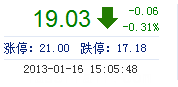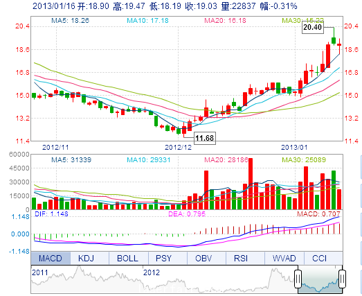 | 今 開: | 18.90 | 成交量: | 2.28萬(wan) 手 | 振 幅: | 6.71% |