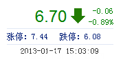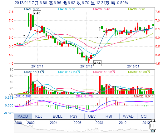 | 今 開: | 6.80 | 成交量: | 12.31萬(wan) 手 | 振 幅: | 5.03% |