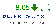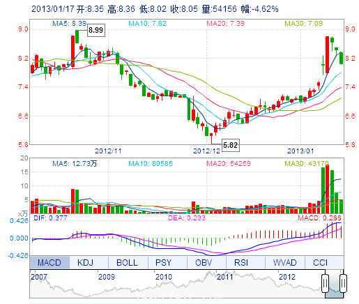 | 今 開: | 8.35 | 成交量: | 5.42萬(wan) 手 | 振 幅: | 4.03% |