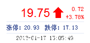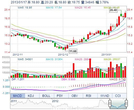 | 今 開: | 18.80 | 成交量: | 3.48萬(wan) 手 | 振 幅: | 7.36% |
