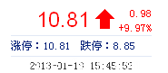 | 最 高: | 10.81 | 成交額: | 9.46億(yi) 元 | 換手率: | 9.41% |
