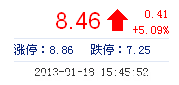 | 最 高: | 8.60 | 成交額: | 7946.17萬(wan) 元 | 換手率: | 4.88% |