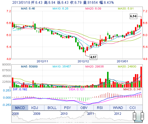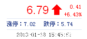 | 今 開: | 6.43 | 成交量: | 8.17萬(wan) 手 | 振 幅: | 7.99% |