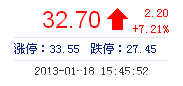 | 最 高: | 33.00 | 成交額: | 3.50億(yi) 元 | 換手率: | 4.01% |