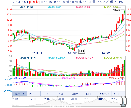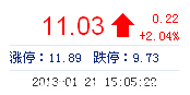 | 今 開: | 11.15 | 成交量: | 115.21萬(wan) 手 | 振 幅: | 5.18% |