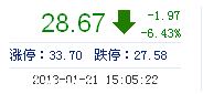 | 今 開: | 30.40 | 成交量: | 1.72萬(wan) 手 | 振 幅: | 5.91% |