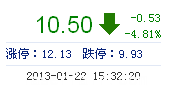 今開: 10.71 成交量: 61.46萬(wan) 手 振幅: 3.99% 最高: 10.86 成交額: 6.53億(yi) 元 換手率: 6.50% 最低: 10.42 總市值: 109.66億(yi) 市淨率: 3.39 昨收: 11.03 流通市值...