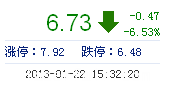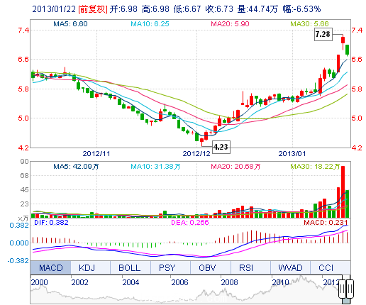 | 今 開: | 6.98 | 成交量: | 44.74萬(wan) 手 | 振 幅: | 4.31% |