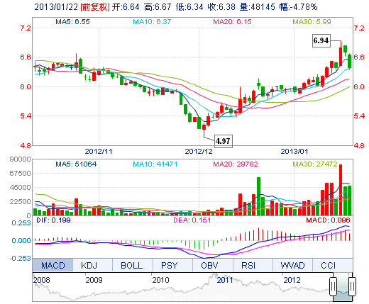 | 今 開: | 6.64 | 成交量: | 4.81萬(wan) 手 | 振 幅: | 4.93% |
