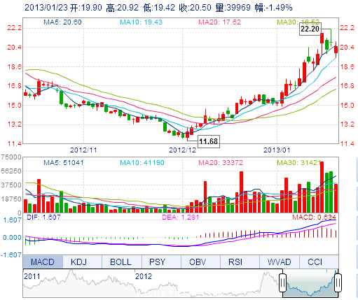 | 今 開: | 19.90 | 成交量: | 4.00萬(wan) 手 | 振 幅: | 7.21% |
