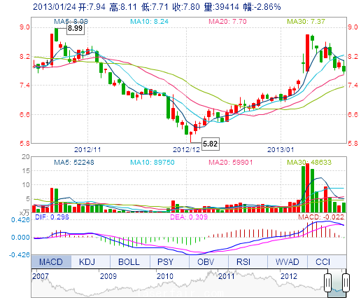 | 今 開: | 7.94 | 成交量: | 3.94萬(wan) 手 | 振 幅: | 4.98% |