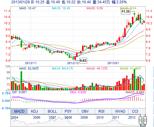 | 最 高: | 10.49 | 成交額: | 3.57億元 | 換手率: | 3.64% |