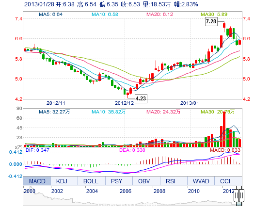 | 最 高: | 6.54 | 成交額: | 1.20億(yi) 元 | 換手率: | 2.08% |