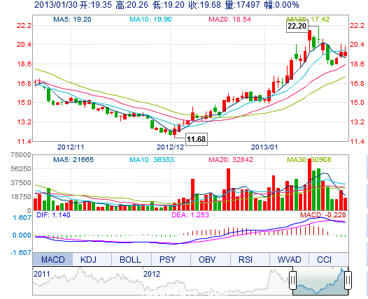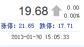 | 今 開: | 19.35 | 成交量: | 1.75萬(wan) 手 | 振 幅: | 5.39% |