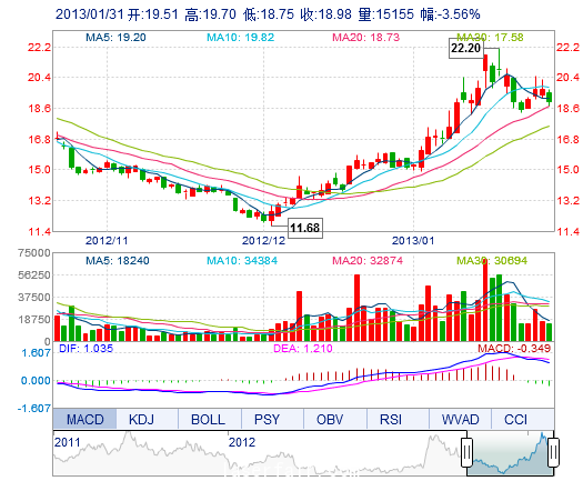 | 昨 收: | 19.68 | 流通市值: | 6.35億(yi) | 市盈率TTM: | 57.13 |