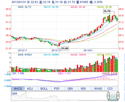 | 今 開: | 32.63 | 成交量: | 8.17萬手 | 振 幅: | 6.04% |