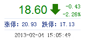 | 今 開: | 18.94 | 成交量: | 1.01萬(wan) 手 | 振 幅: | 2.73% |