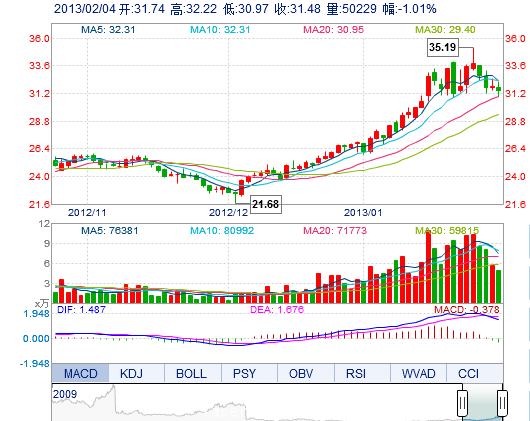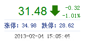 | 今 開: | 31.74 | 成交量: | 5.02萬(wan) 手 | 振 幅: | 3.93% |