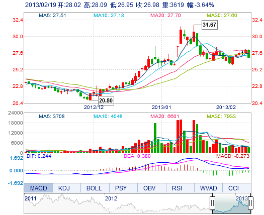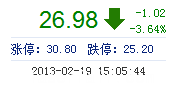 | 今 開: | 28.02 | 成交量: | 3619手 | 振 幅: | 4.07% |