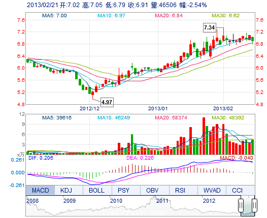 | 今 開: | 7.02 | 成交量: | 4.65萬(wan) 手 | 振 幅: | 3.67% |