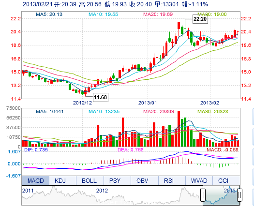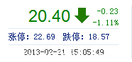 | 今 開: | 20.39 | 成交量: | 1.33萬(wan) 手 | 振 幅: | 3.05% |