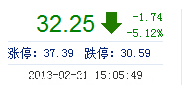 | 最 低: | 32.25 | 總市值: | 96.00億(yi) | 市淨率: | 7.36 |