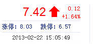 | 最 高: | 7.64 | 成交額: | 1.55億(yi) 元 | 換手率: | 2.33% |