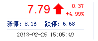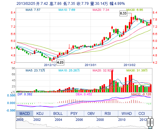 | 最 高: | 7.86 | 成交額: | 2.30億(yi) 元 | 換手率: | 3.38% |