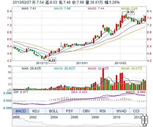 | 最 高: | 8.03 | 成交額: | 2.86億(yi) 元 | 換手率: | 4.11% |