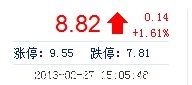 | 最 高: | 8.89 | 成交額: | 8479.33萬(wan) 元 | 換手率: | 5.10% |