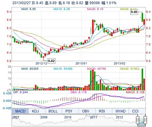 | 今 開: | 8.45 | 成交量: | 9.91萬(wan) 手 | 振 幅: | 8.18% |
