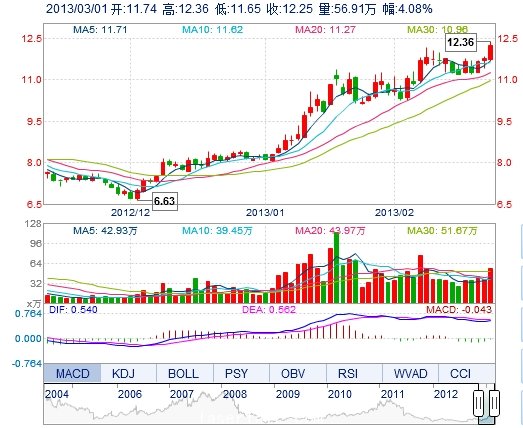 | 最 高: | 12.36 | 成交額: | 6.90億(yi) 元 | 換手率: | 6.02% |