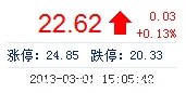 | 今 開: | 22.91 | 成交量: | 1.91萬(wan) 手 | 振 幅: | 3.41% |