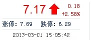 | 今 開: | 6.98 | 成交量: | 8.75萬(wan) 手 | 振 幅: | 4.29% |