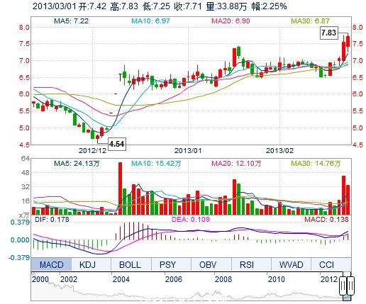 | 最 高: | 7.83 | 成交額: | 2.54億(yi) 元 | 換手率: | 7.76% |
