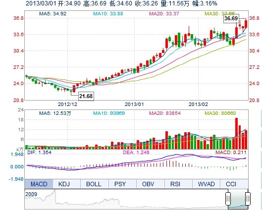 | 今 開: | 34.90 | 成交量: | 11.56萬(wan) 手 | 振 幅: | 5.95% |