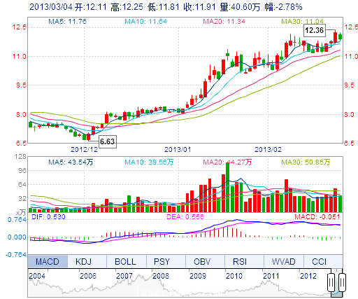 | 今 開: | 12.11 | 成交量: | 40.60萬(wan) 手 | 振 幅: | 3.59% |