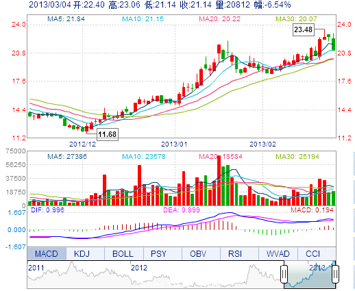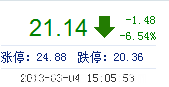 | 今 開: | 22.40 | 成交量: | 2.08萬(wan) 手 | 振 幅: | 8.49% |