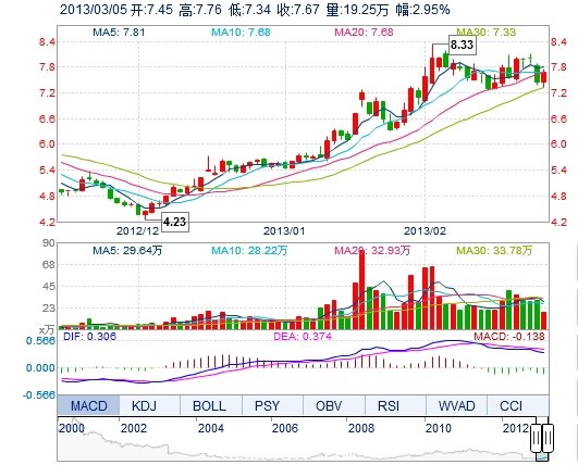 | 今 開: | 7.45 | 成交量: | 19.25萬(wan) 手 | 振 幅: | 5.64% |