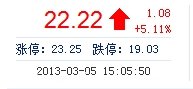 | 最 高: | 22.23 | 成交額: | 2835.22萬(wan) 元 | 換手率: | 3.91% |