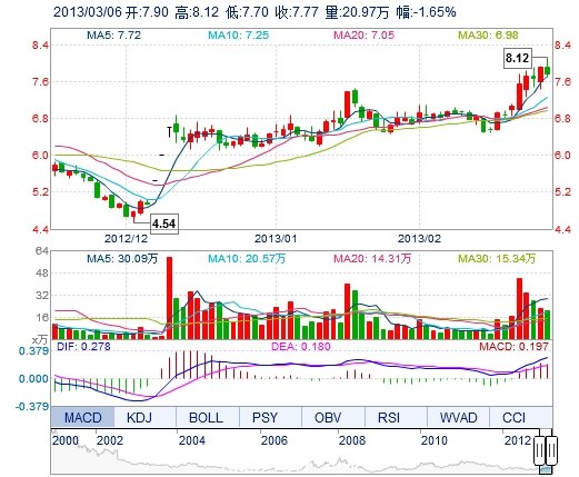| 今 開: | 7.90 | 成交量: | 20.97萬(wan) 手 | 振 幅: | 5.32% |