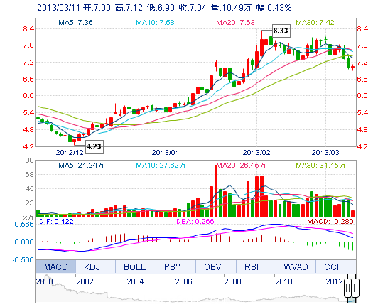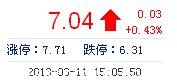 | 今 開: | 7.00 | 成交量: | 10.49萬(wan) 手 | 振 幅: | 3.14% |