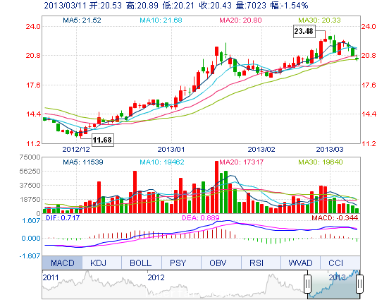 | 今 開: | 20.53 | 成交量: | 7023手 | 振 幅: | 3.28% |