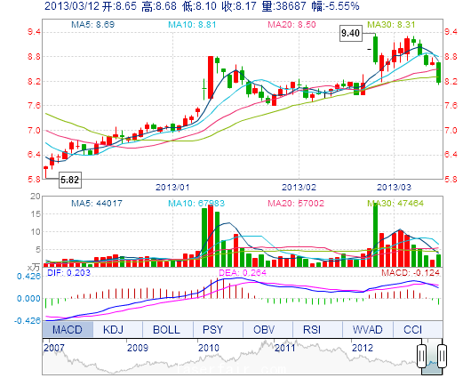 | 今 開: | 8.65 | 成交量: | 3.87萬(wan) 手 | 振 幅: | 6.71% |