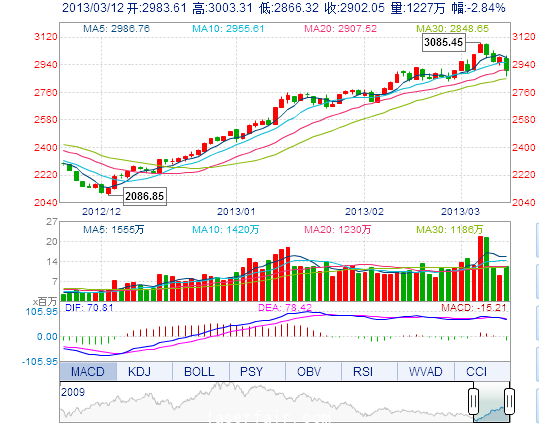 | 昨 收: | 2986.99 | 最 低: | 2866.32 |