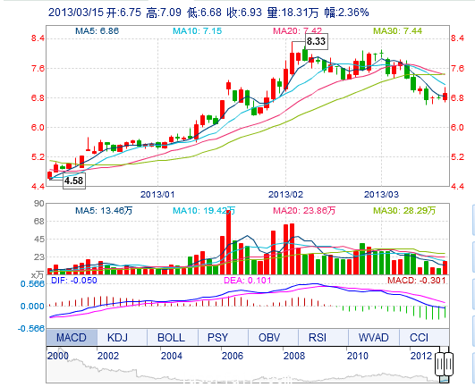 | 最 低: | 6.68 | 總市值: | 61.75億(yi) | 市淨率: | 2.37 |