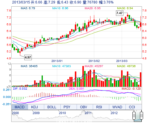 | 今 開: | 6.66 | 成交量: | 7.68萬(wan) 手 | 振 幅: | 12.93% |