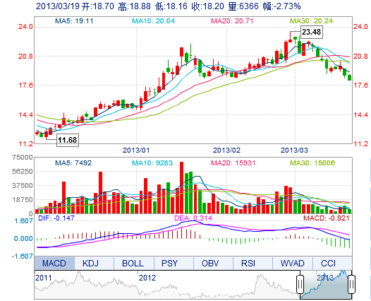 今 開: 18.70 成交量: 6366手 振 幅: 3.85% 最 高: 18.88 成交額: 1174.76萬(wan) 元 換手率: 3.27% 最 低: 18.16 總市值: 12.19億(yi) 市淨率: 3.85 昨 收: 18.71 流通...